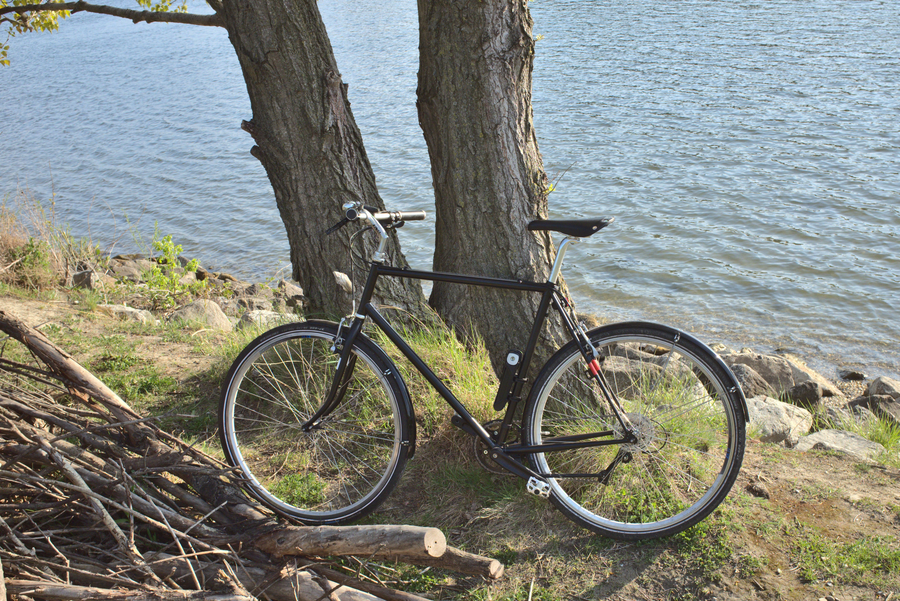 The Bianchi is the work horse. It is a custom built, reanimated 9 gear Bianchi Spillo frame with new expendable parts. The frame has a height of 58cm and runs on 28inch wheels. Tires are Schwalbe Marathon Performance Line Green Guard 37-622(28c1.4 - 700x35C) on ZX19 Exal crotched rims.