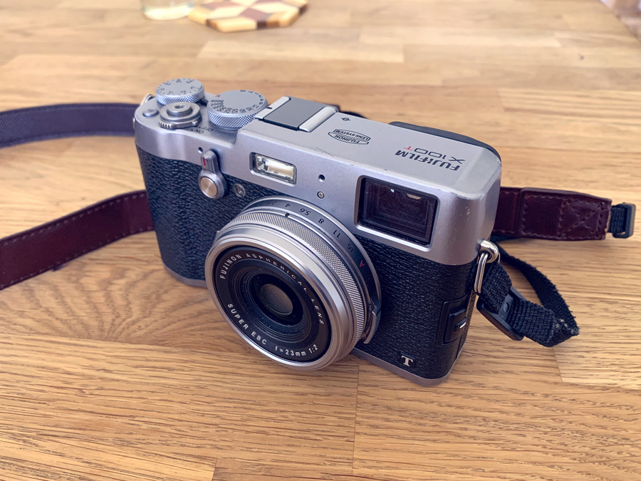 It is second-hand Fuji X100T from 2013 that I aquired in 2020. It is a fairly simple digital camera - the lense can't be unmounted and it's doesn't do particularly well in low-light situations. But it is built like a tank, has great UX and sparks more joy in me than any other camera I have used.