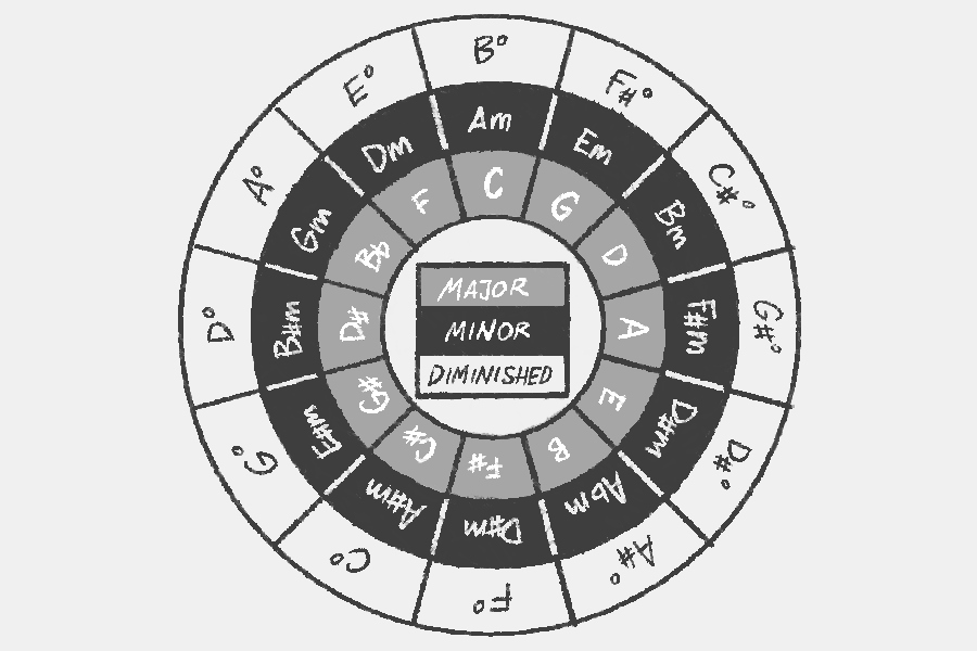 It also describes the relationship that different scales have to one another and often showns the major, minor and diminished scales.