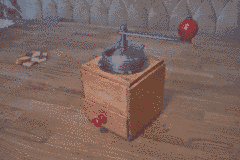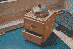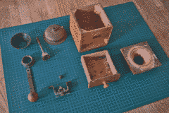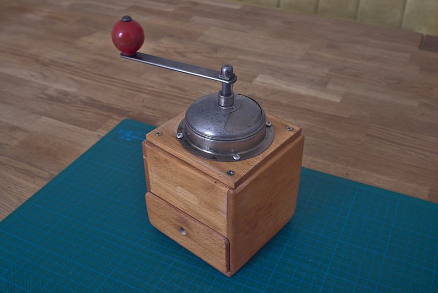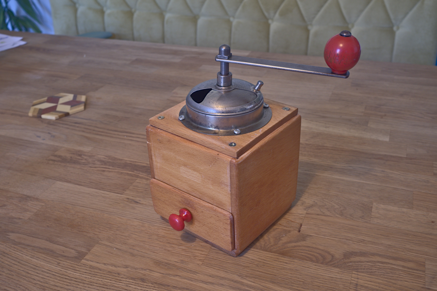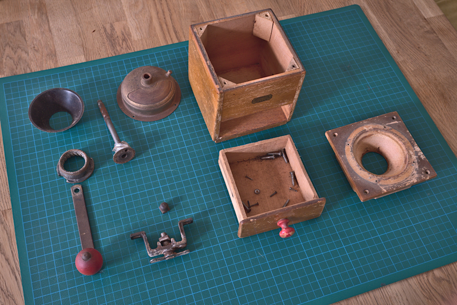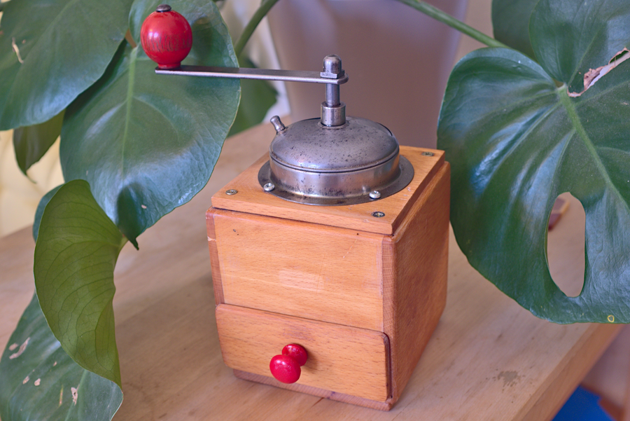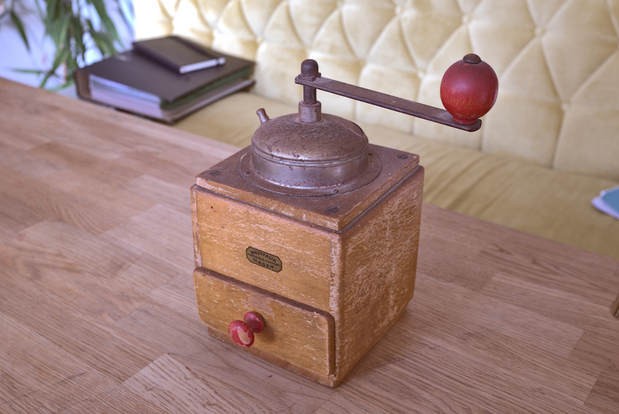 A restored coffee grinder.