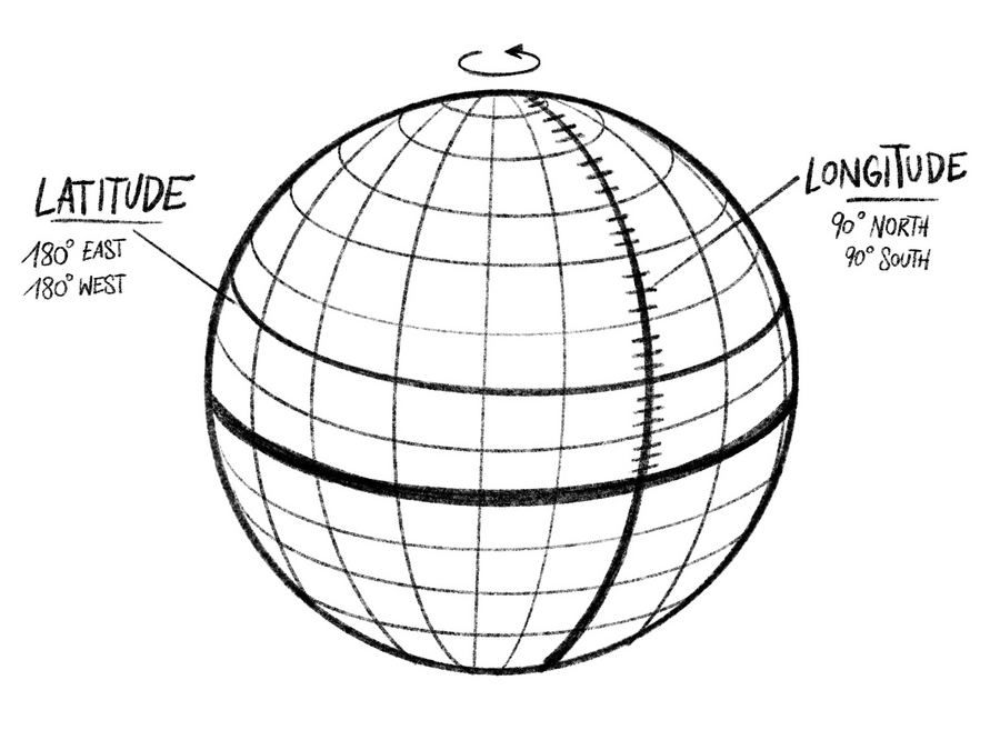 From the equator are 90° North and 90° to the poles.