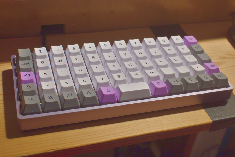 For day to day work on Trabant I use the OLKB Preonic v3, a 5x12 orthographic keyboard with Gateron Aliaz Silent MX mechanical switches and the Acute keycap set.
