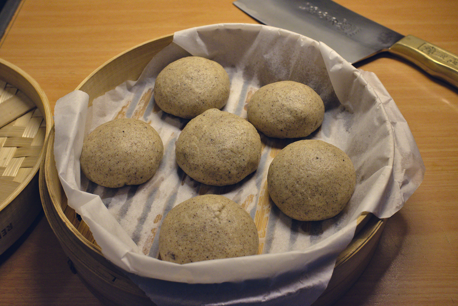 Put the dumplings in the basket with the seam on the bottom side and steam them for 10 minutes in high heat.
