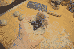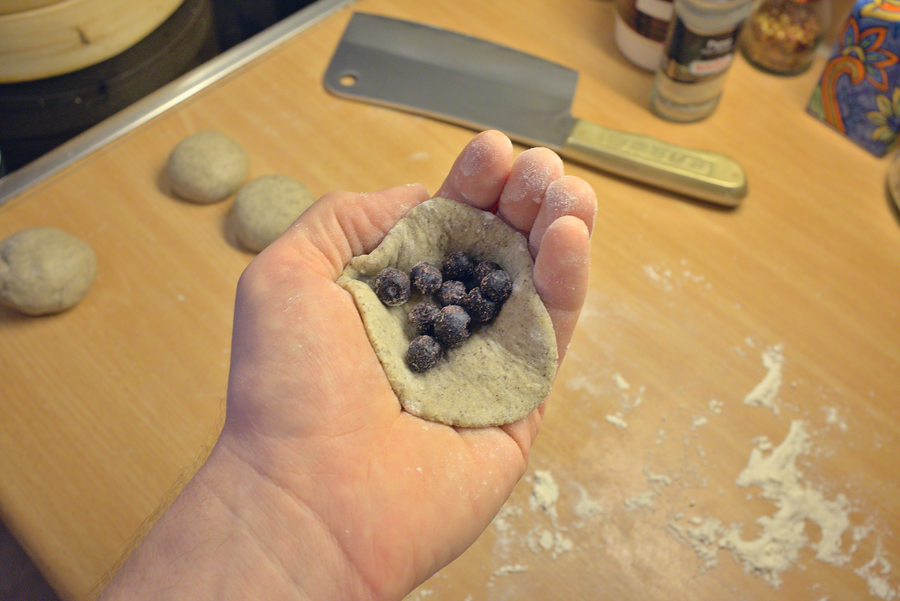 Put a spoon full of filling into the center of the dumpling, wrap the dough around it and close it tightly at the top.