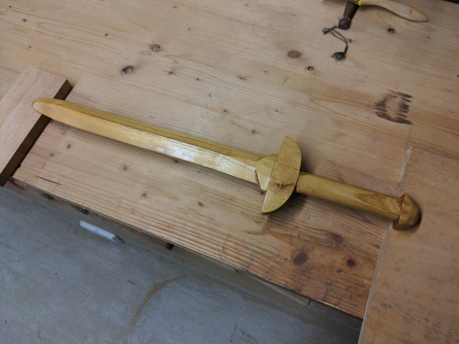 251116 | One of two oak wood training swords carved for my son.
